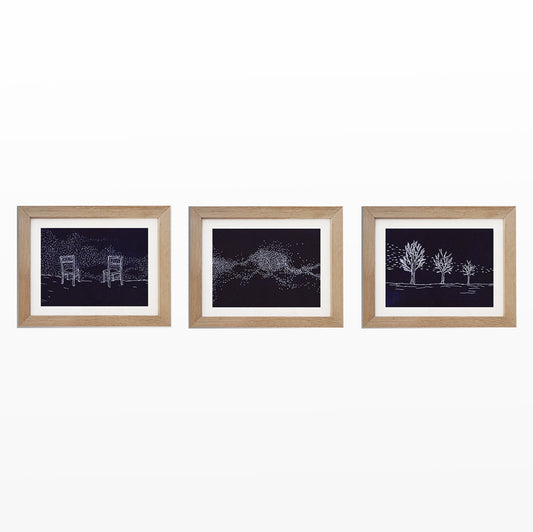 Uitverkocht'Bomen'- Linodruk in massief eiken kader