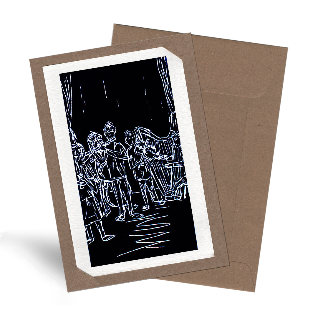 Eén kaart uit de 'Muziek' reeks, geleverd in een passe-partout met enveloppe.