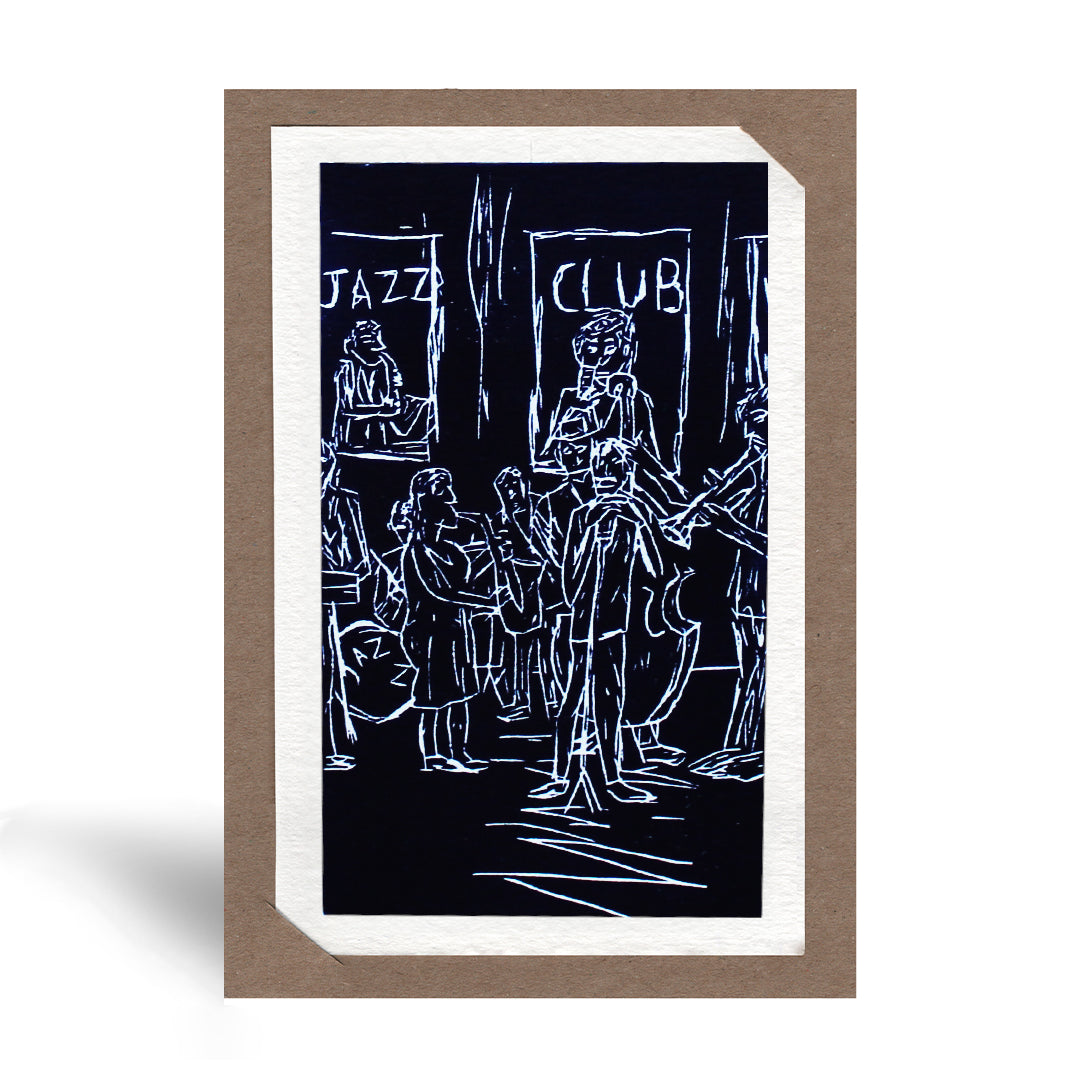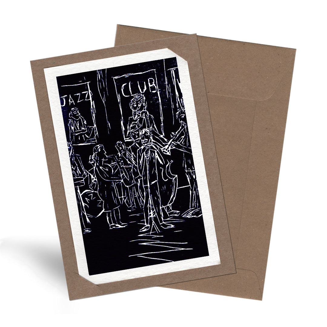 Eén kaart uit de 'Muziek' reeks, geleverd in een passe-partout met enveloppe.