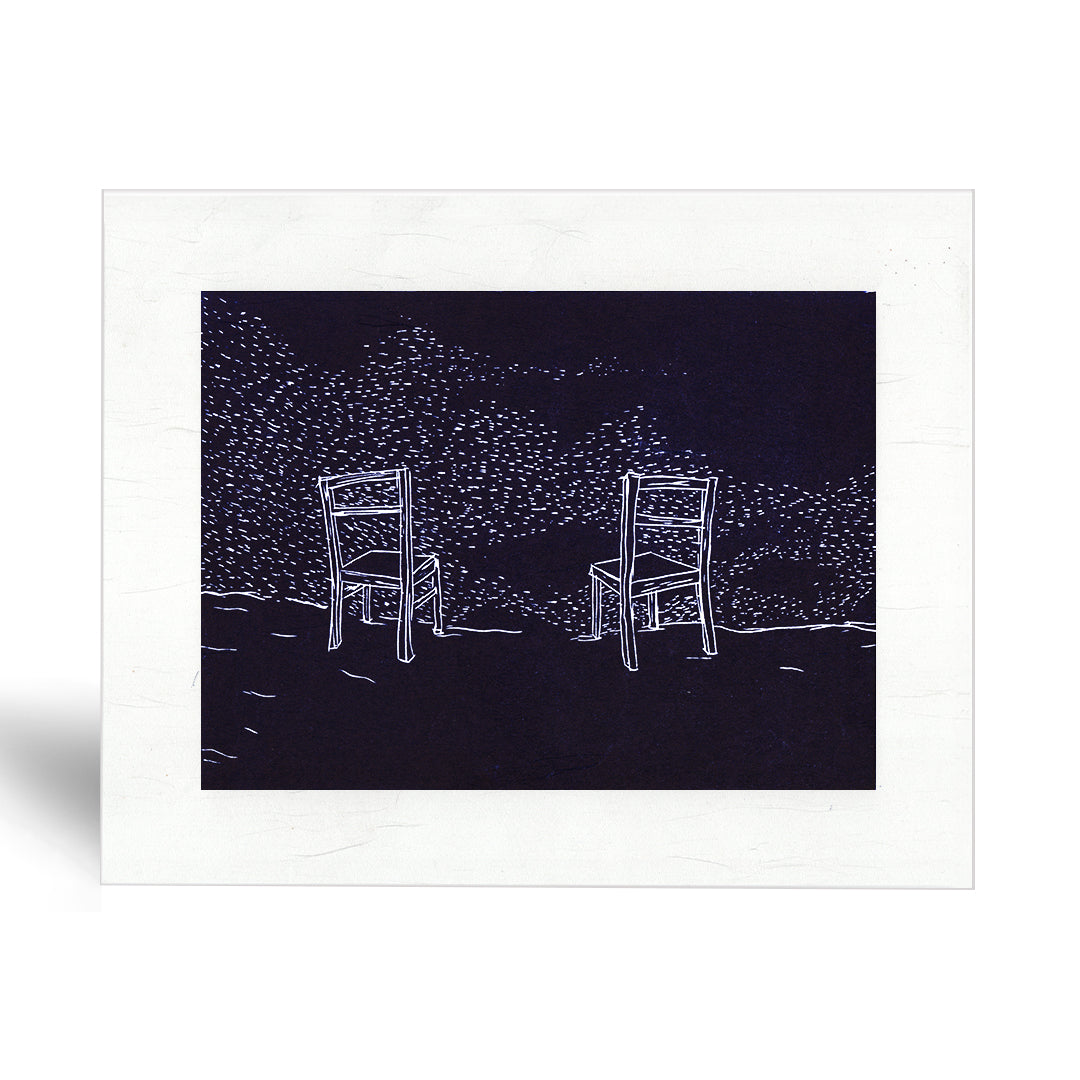 Eén linodruk genaamd ‘stoelen’, geleverd zonder kader.